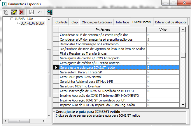 Para atender ao exposto no artigo 332 § 2º do Decreto 13780/2012 - RICMS/BA, do Estado da Bahia, que possibilita o recolhimento em mês subsequente ao da retenção do referido imposto, foi criado o parâmetro “Gera ajuste e guia para ICMS/ST retido”, de forma que, se ATIVO gerará ajustes a débito ou crédito, conforme apuração, e guia de recolhimento do imposto.
