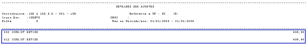 Gera Ajuste e guia para ICMS/ST Retido = N