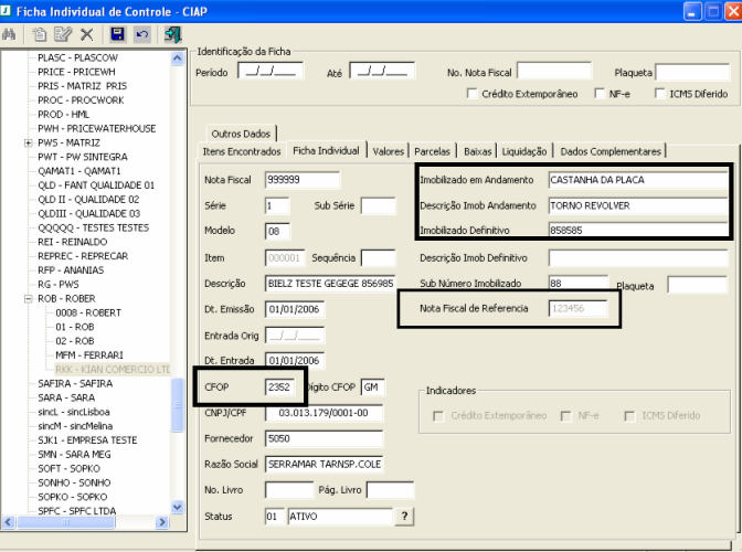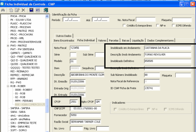 Quando criado a ficha de frete no Ciap os campos das informações dos Imobilizados não estavam sendo prenchidos automáticamente conforme a ficha da compra do bem.