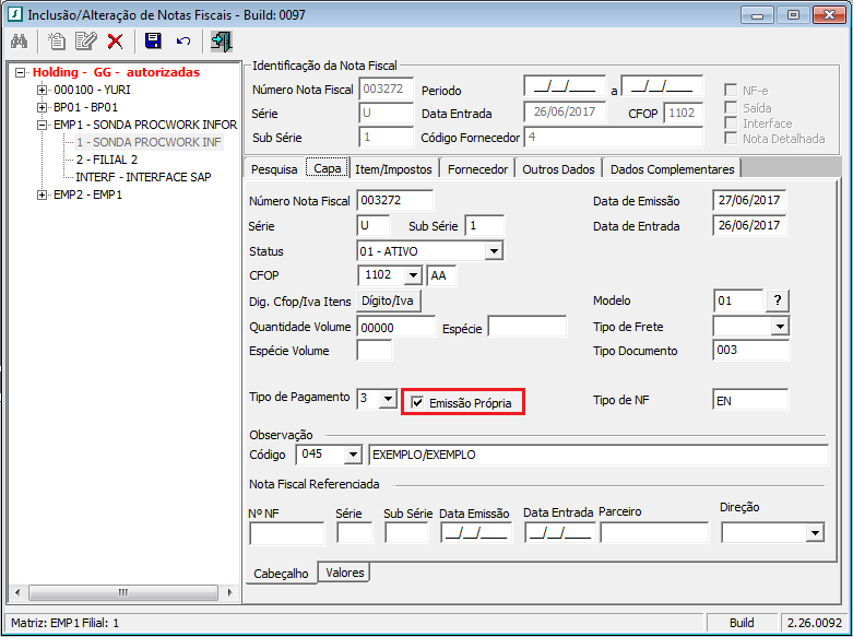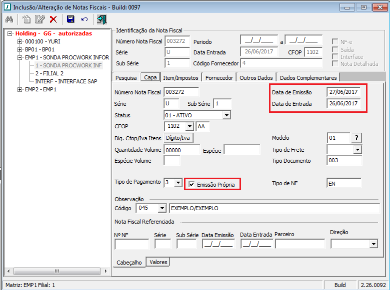 Descrição da Nota: Melhoria realizada na Interface de Indiretos (Processar Dados), disponibilizando o processamento da Nota Fiscal de Entrada própria com a data e emissão menor à data de entrada para o PW.SATI.