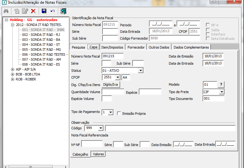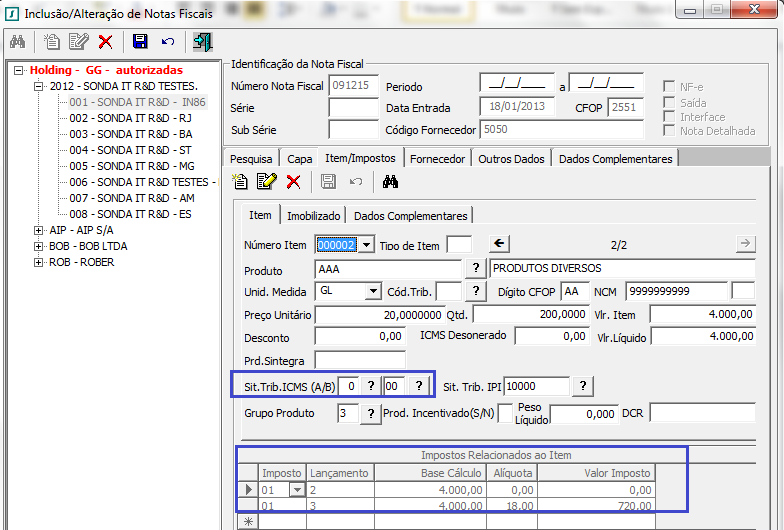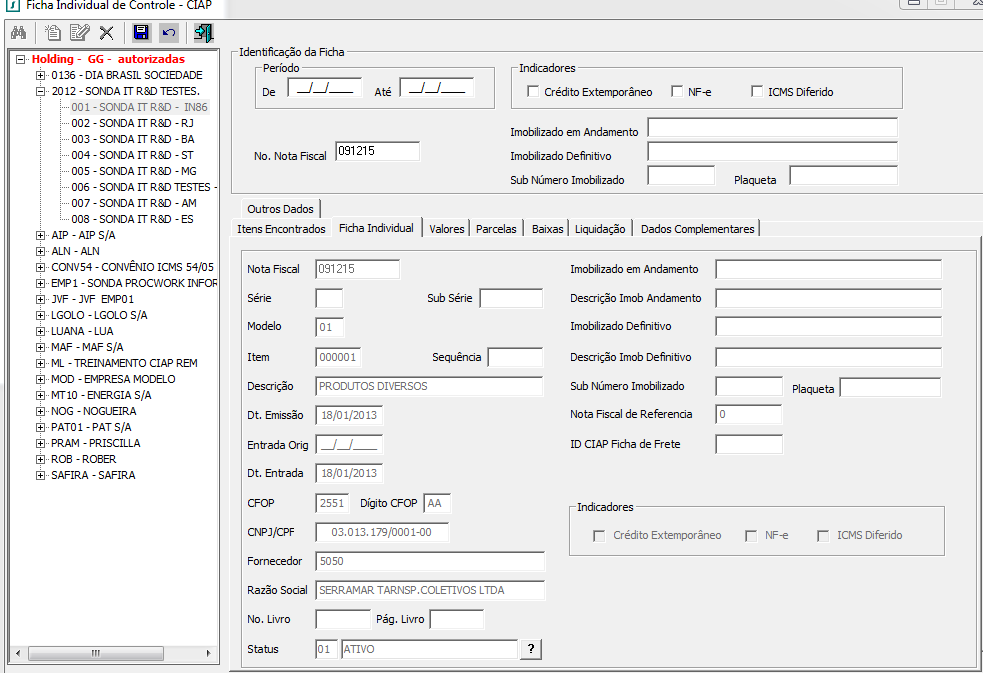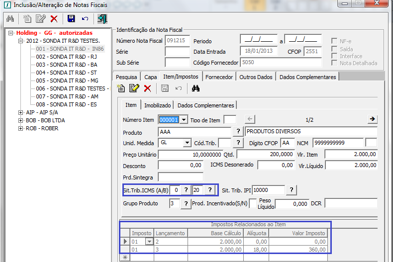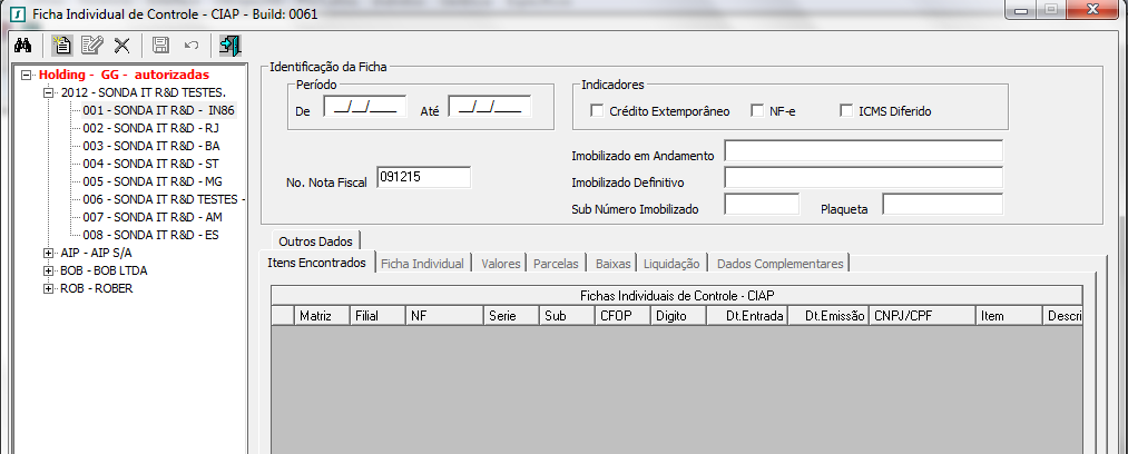 Não esta abrindo Ficha para controle do CIAP ao lançar uma Nota Fiscal com Operação de Código de Situação Tributaria igual a 20 (Com Redução na Base de Cálculo de ICMS),quando a Nota Fiscal possui mais de um item.