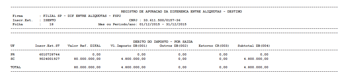 Quando o cliente tem apenas o Difal não está sendo demonstrado apenas esse imposto.