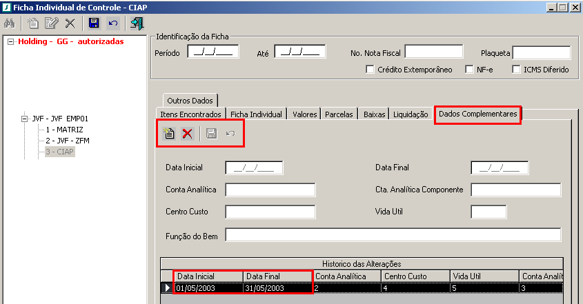 Na regra anterior, na tela de "Manutenção de Fichas", aba "Dados Complementares" não era permitido excluir dados de períodos abertos.