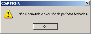 Na tentativa de excluir dados com período fechado, a seguinte mensagem será apresentada: