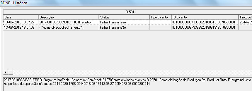 Ao gerar o evento R-2099 para um período em que houve a transmissão dos eventos R-2050 e R-2060, ocorria Falha de Transmissão no evento R-5011.