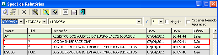LOG da Interface CIAP - gerado com o período CIAP aberto: