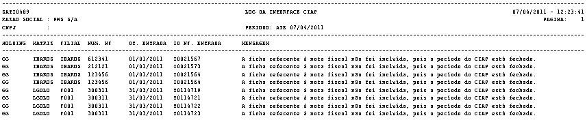 LOG da Interface CIAP - gerado com o período CIAP fechado: