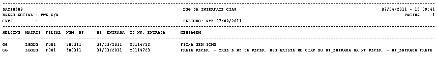 Descrição da Nota: Tratamento efetuado na interface do CIAP para gerar log de fichas não criadas, SATI0489 - LOG da Interface CIAP.
