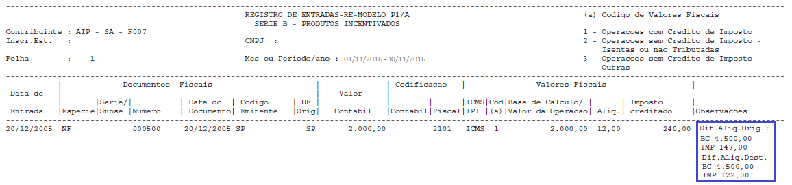 P887 - Crédito por Entradas - Dif. Alíq – Origem;
