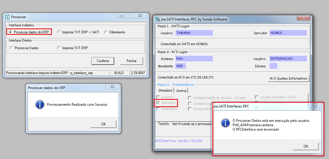 ‘O Processar Dados está em execução pelo usuário ‘XXXX’ (usuário oracle) desde (data e horário). O RFCInterface será encerrado.’