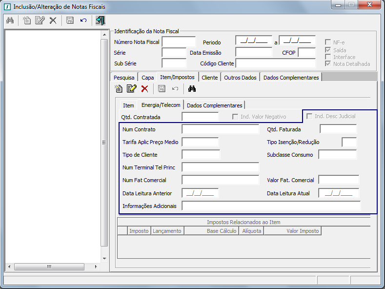 Na na aba Energia/Telecom, foram incluídos os seguintes campos: