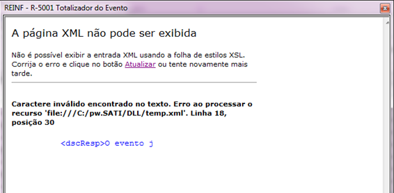 Tratamento efetuado para exibir corretamente o xml do evento R-5001.