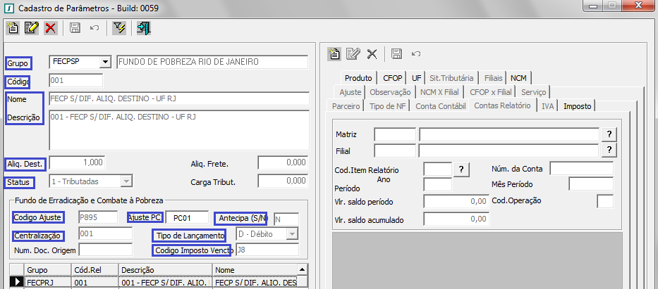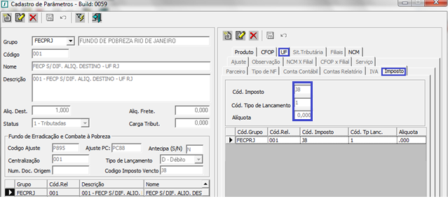 Para efetuar a apuração do FECP sobre a Diferença entre Alíquotas Destino são necessárias as seguintes parametrizações: