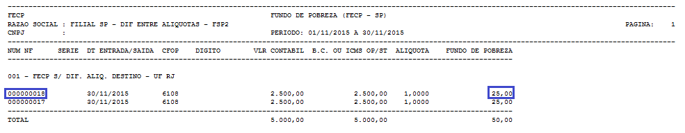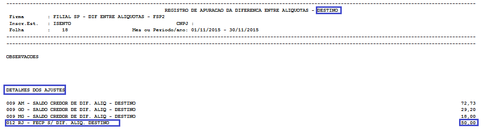 Descrição: FECP S/ DIF. ALIQ. DESTINO