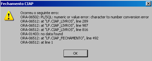 ORA-06512: at "LF.CIAP_FECHAMENTO", line xxx