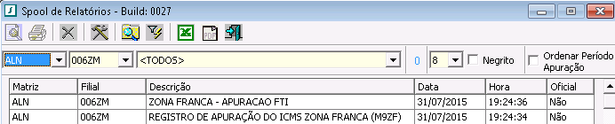 Serão gerados no SPOOL de relatórios as seguintes Apurações: