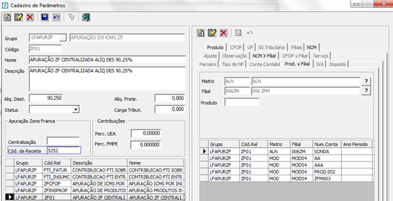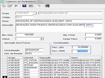 Tratamento na tela de Cadastro de Parâmetros no Grupo LFAPURZF para realizar Cálculo das contribuições UEA e FMPES definidas por Incentivo.