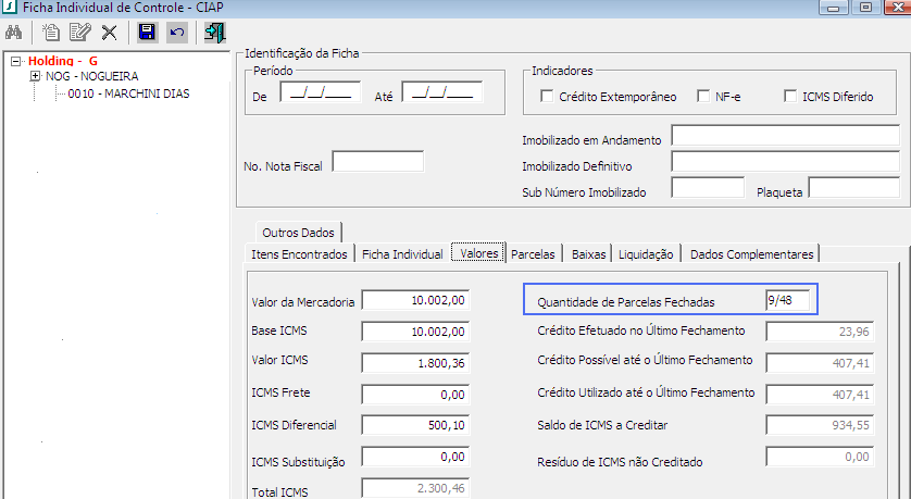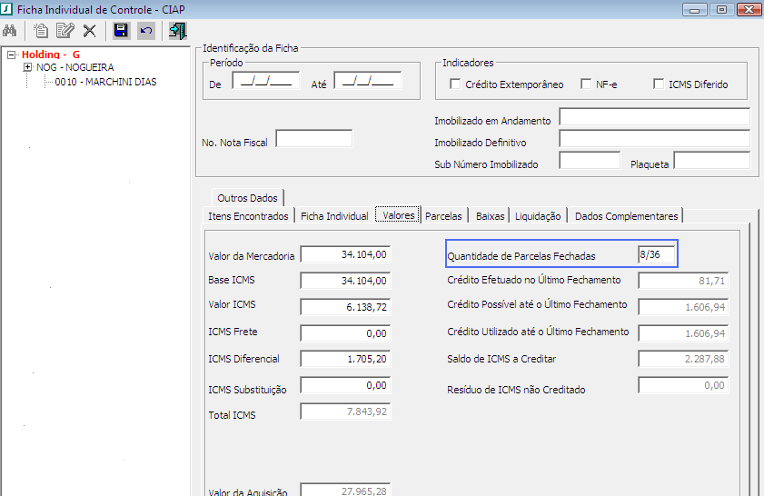 Descrição da Nota: Melhoria realizada no campo "Quantidade de Parcelas Fechadas" da Aba Valores da tela Manutenção de Fichas, para demonstrar a quantidade de apropriação de Crédito a ser tomado na ficha do CIAP.