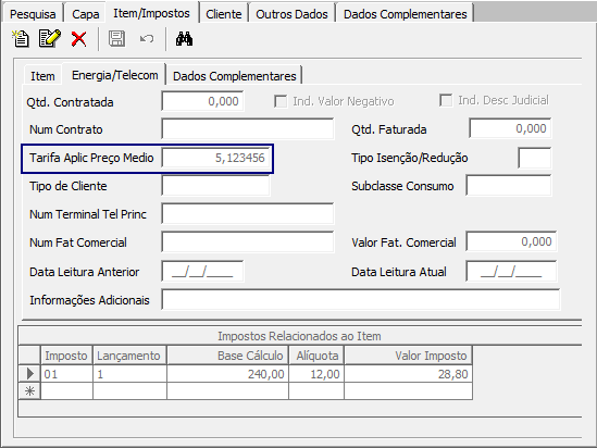 Descrição da Nota: Tratamento efetuado para que o campo "Tarifa Aplic Preço Médio" seja apresentado com 6 casas decimais na aba de Energia/Telecom.