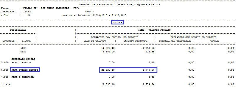 A apuração da Diferença entre Alíquotas Origem e Destino serão demonstradas no Livro Modelo9 em páginas distintas, após as páginas de apuração do ICMS-ST.
