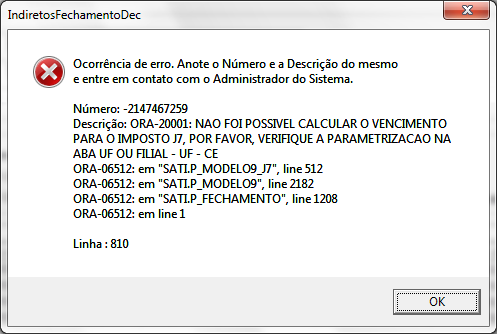 “Não foi possível calcular o vencimento para o imposto J7, por favor, verifique a parametrização na aba UF Ou Filial – XX":