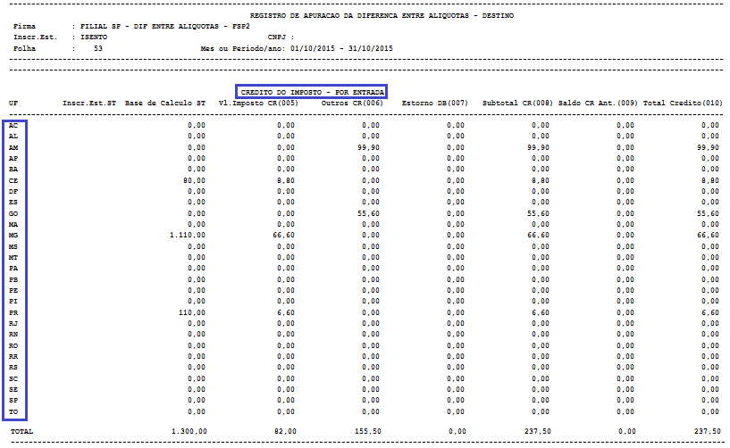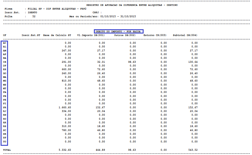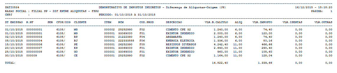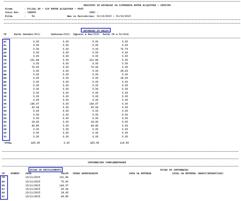 Após as páginas de apuração do Imposto J6 - Diferença entre Alíquotas - Origem, serão criadas quatro páginas para demonstrar os valores apurados para o Imposto J7 - Diferença de Alíquotas-Destino de forma consolidada, ou seja, a apuração de todas as UF será demonstrada na mesma página.