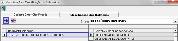 Para liberação, acessar o menu: Relatório > Manutenção e Classificação. Verificar se o mesmo consta como “Relatório sem Grupo”. Se sim, escolha um grupo (lado direito da tela).