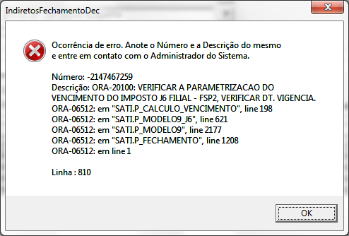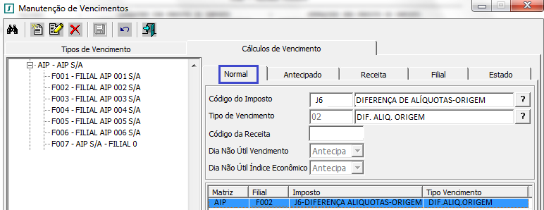 “Verificar parametrização do Vencimento do Imposto J6 – Filial XXX”