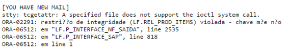Descrição da Nota: Correção realizada na Interface de Indiretos (Processar Dados), para o Dump: 'ORA-02291: restrição de integridade (LF.REL_PROD_ITEMS) violada'.