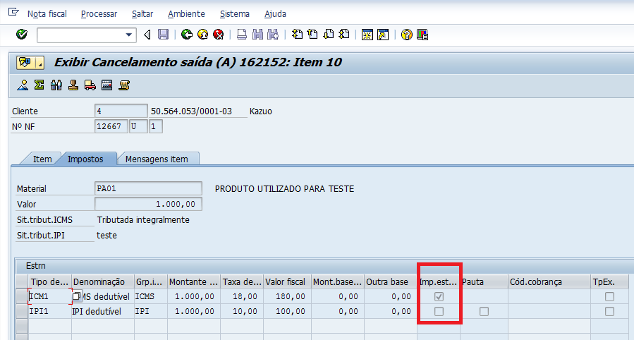 Descrição da Nota: Tratamento realizado na Interface de Indiretos, ZLFR000, para zerar os valores dos Impostos Estatísticos.