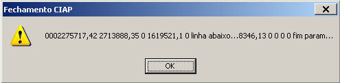 Estava apresentando a mensagem ilustrada no print abaixo, ao realizar o processo de fechamento: