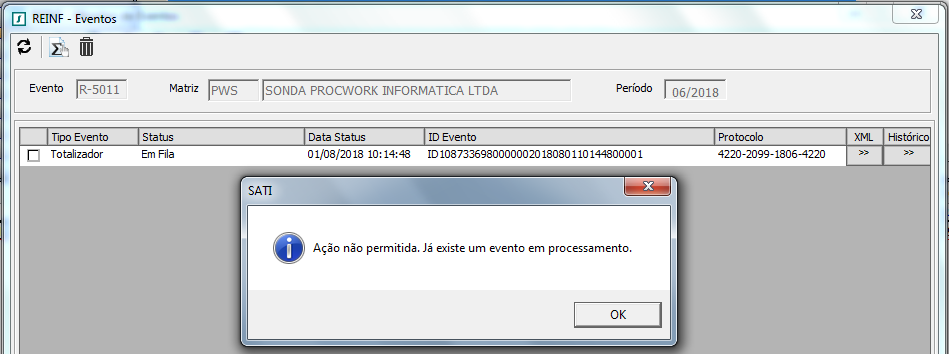 Tratamento efetuado para não permitir Solicitar um novo evento R-5011 quando já existir um evento com o Status: