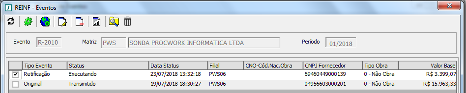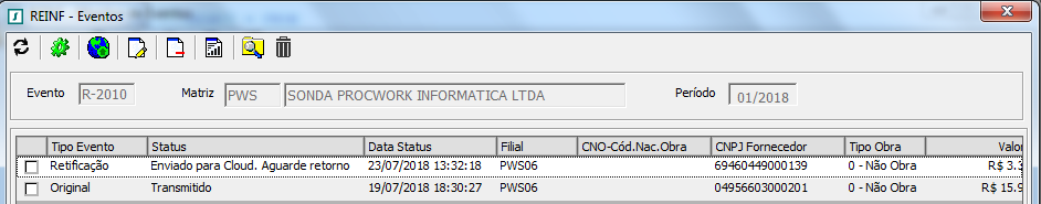 Descrição da Nota: EFD-REINF - Tratamento efetuado nos eventos R-2010 preenchimento do campo indCPRB quando no xml existir notas com alíquotas 11% e 3,5%, R-2020 retirado o preenchimento dos zeros a esquerda do campo CNO e outros tratamentos. Clientes REINF-SaaS tratamento efetuado para não apresentar status Executando no Monitor de Eventos.