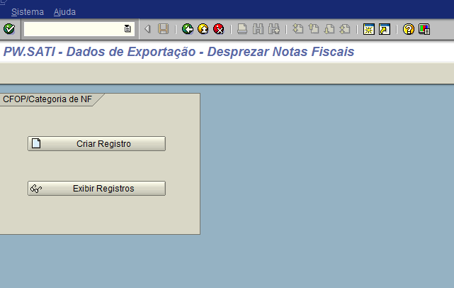 Ao executar a transação, escolher entre uma das Opções Criar Registros ou Exibir Registros.