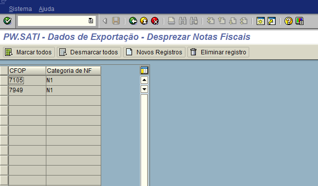 Nesta transação deve-se parametrizar somente os CFOPs + Categoria das NFs que não contenham dados complementares de Exportação no produto PW.CE.