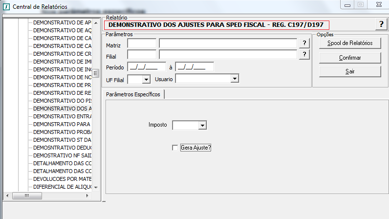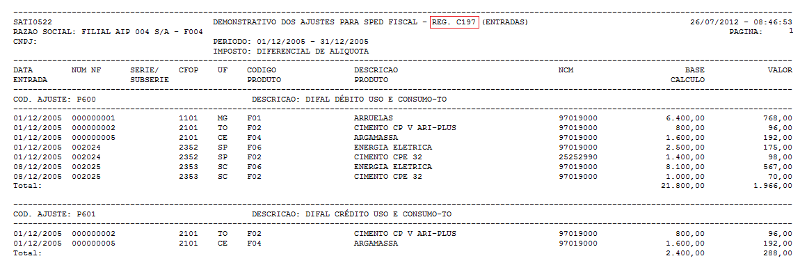 De : Demonstrativo dos Ajustes para SPED Fiscal – Registro C197