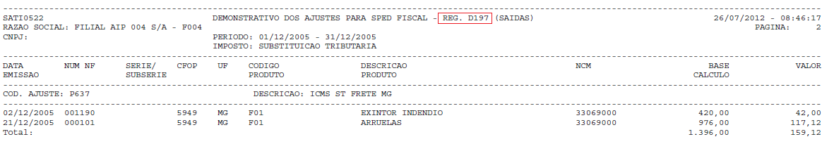 Descrição da Nota: DEMONSTRATIVO DOS AJUSTES PARA SPED FISCAL ¿ REG. C197/D197 (SATI0522) - Tratamento efetuado no relatório com inclusão de regras para atender o registro D197 do SPED FISCAL.