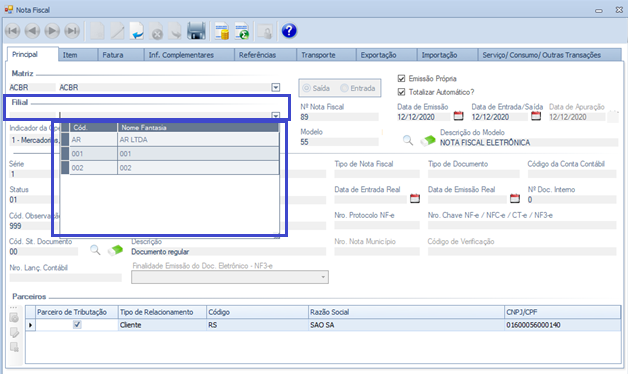 Descrição da Nota: Tratamento na Tela de Nota Fiscal, permitindo a edição do campo Matriz, Filial e Nº Doc interno, quando for efetuada a cópia de um documento.