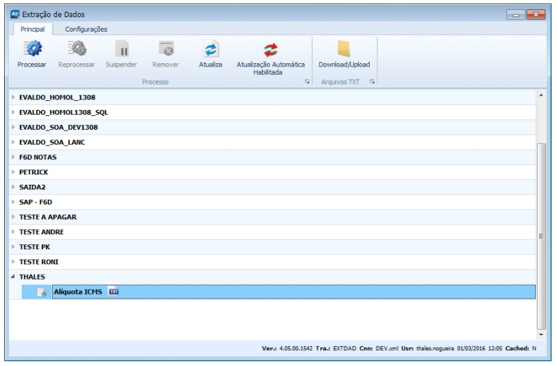 Criação da Extração de Alíquotas a partir de arquivo TXT.