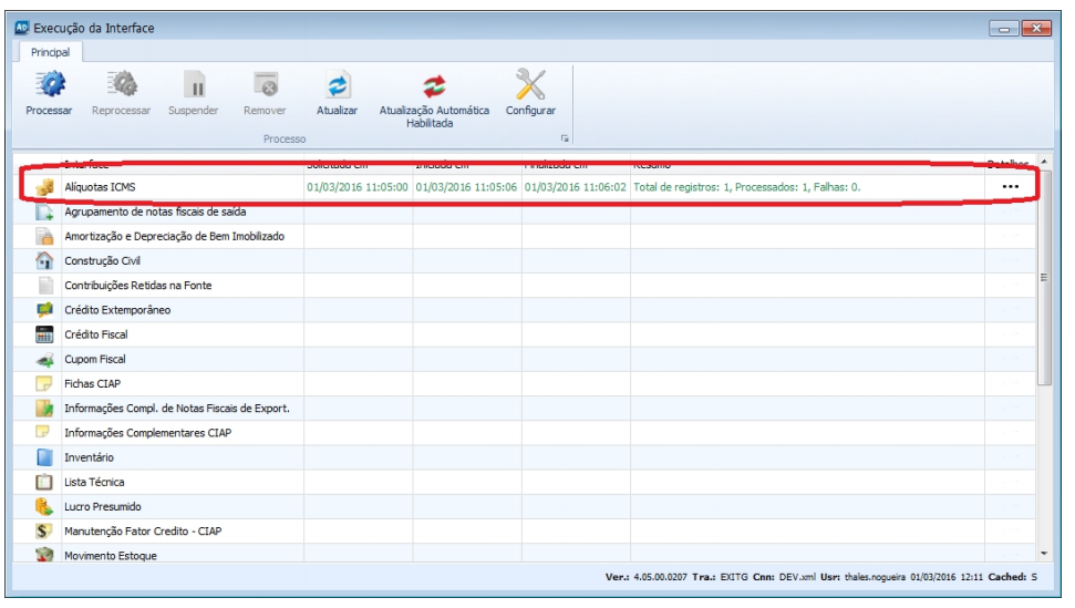 Descrição da Nota: Criação da Interface de Alíquotas ICMS.