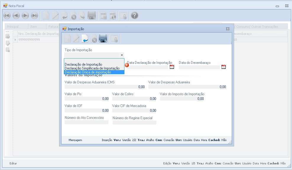 Descrição da Nota: Desenvolvimento de novo Codigo de tipo de importação, e tratamento para regras de validação da nota fiscal