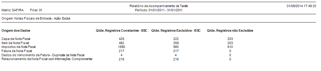 Quando o tipo de tarefa for ‘Avançado’ haverá a quebra por página das informações de acordo com a Filial, Origem e Ação para qual a tarefa foi gerada. Este tratamento, também, foi realizado para o Relatório de Inconsistências.