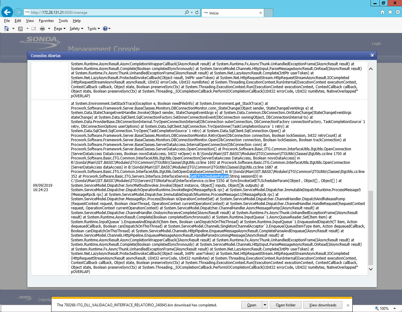 Descrição da Nota: 1- Liberação de melhorias para análise das validações e erros ocorridos no processo de Interfaces. (Relatórios PDF e EXCEL). 2- Correção em partes do código relacionados ao processo de Interfaces para fechamento de conexões com o banco de dados, liberando o Pool para ter ganho de performance.