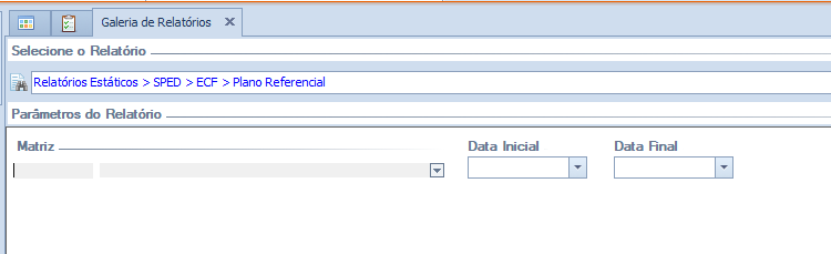 É necessário que exista uma parametrização de plano de contas referencial para o período informado pelo usuário, caso não exista será informada a obrigatoriedade no campo data final.