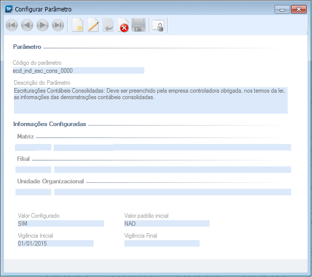 Caso Seja necessário gerar o Bloco K, alterar o campo “Valor Configurado” para “Sim”;