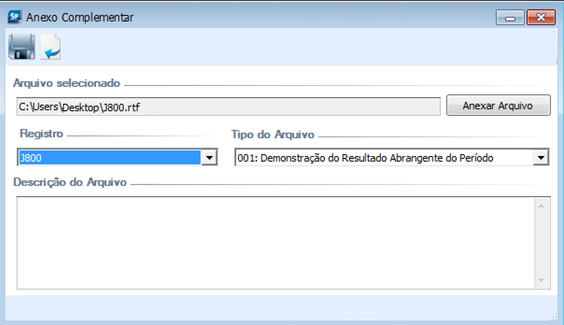 Ao selecionar o registro, será necessário informar os campos Tipo e Descrição do Arquivo.