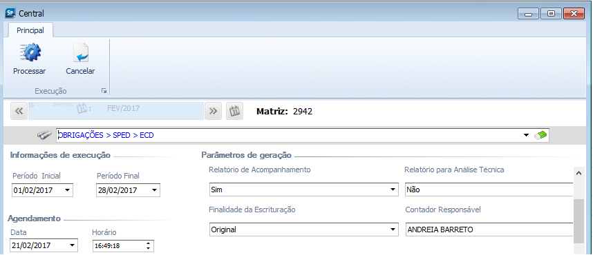 7- Criado o campo "Contador Responsável" na Tela Central para geração do campo 12 - IND_RESP_LEGAL (Identificação do signatário que será validado como responsável legal da empresa junto as bases da RFB) do registro J930.