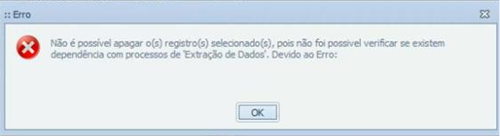 Não é possível apagar o(s) registro(s) selecionado(s), pois não foi possível verificar se existem dependência com processos de “Extração de Dados”