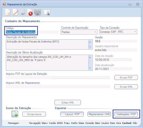 Melhoria realizada nos PDFs de Validações das Interfaces de Indiretos e de Serviços Tomados. Salientamos que os PDFs de Validações são disponibilizados via Menu de Mapeamento da Extração, conforme ilustrações abaixo: