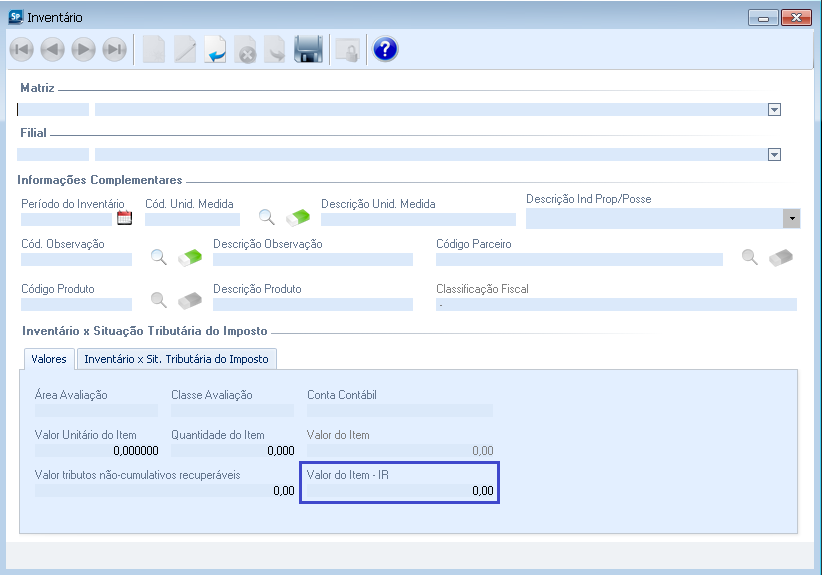 Para que este campo seja devidamente apresentado, é necessário que o campo 'Valor do Item - IR' da tela 'Inventário' esteja preenchido.